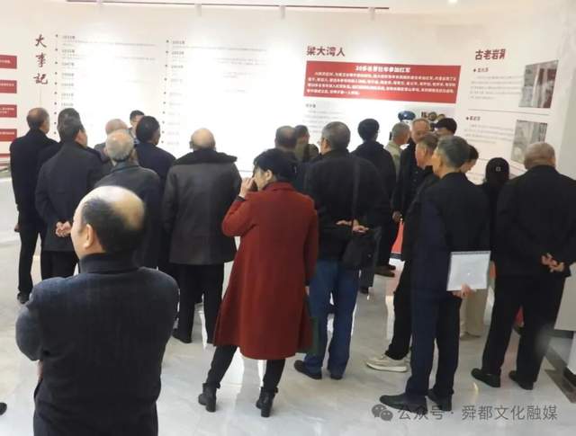 与会人员参观梁大湾村文化礼堂红色展览。