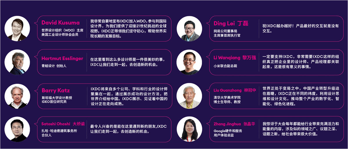 IXDC国际体验设计大会作为全球领先的用户体验创新盛会,同时也是世界设计组织(WDO)、世界设计产业组织(GDIO)、世界绿色设计组织(WGDO)成员,凭借其国际性、专业性与领先性,在推动设计为企业和社会创造价值的道路上不断前行。
