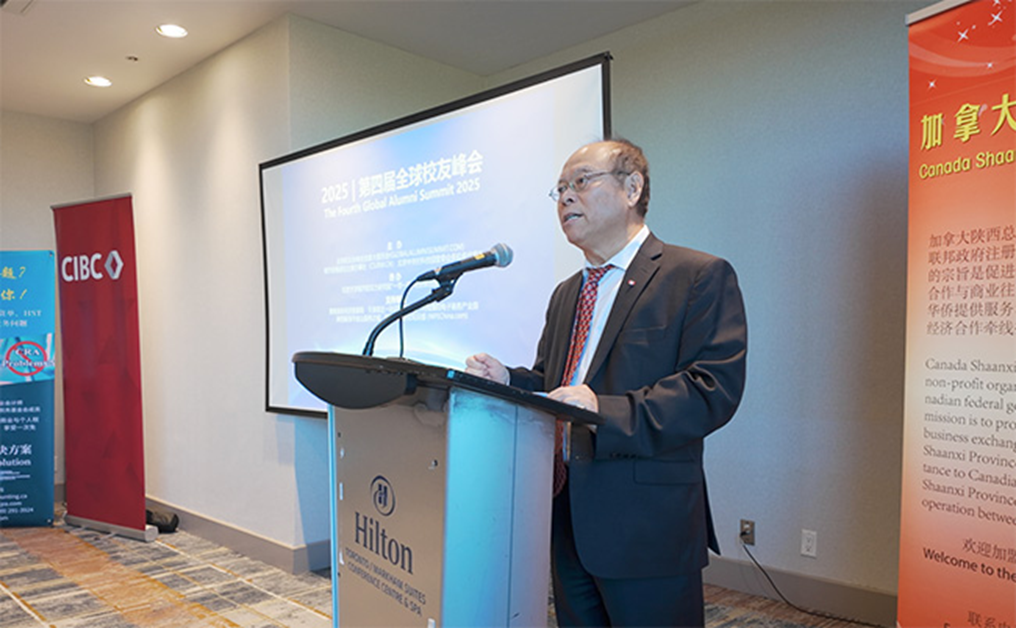 全球校友峰会加拿大委员会主席张志立致辞。共工社发