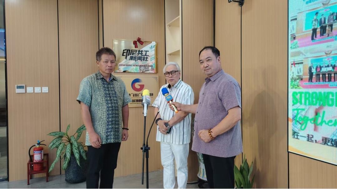 图说:陈日铃董事长、印尼托马斯社会论坛(智囊智库)主席HANDOYO接受记者采访。印尼共工社发