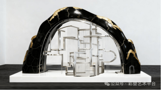 漆艺与雕塑相遇,两种古老艺术形式的碰撞催生出意境表达的新可能。我的这一系列作品以“山”与“径” 为核心元素,将具有装饰意味的意象之山,与抽象极简的线性之“径”熔于一炉,在虚实交织的形体间,雕塑的山形脱胎于自然,经过提炼、概括、重构,以流畅饱满概括山石的形态,剥离了具象的束缚,留下广阔的想象空间,具有多重的意涵,成为传递哲思的载体。而线性造型以简约规整的结构,充分体现出”径”的多重寓意,在形式和内容上都体现出二者的的冲突与对比。二者的结合,让材质的物理属性与艺术的精神属性形成共振,使雕塑不再是单纯的形态呈现,而是意境的具象化表达。而漆艺的介入,为这份意象赋予了天然的光泽与温润触感。