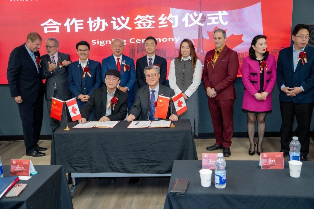 加中企业出海服务中心副主任Harry Wang与加拿大共工新闻社社长孙瑞祥教授签署合作协议。加拿大共工社 发