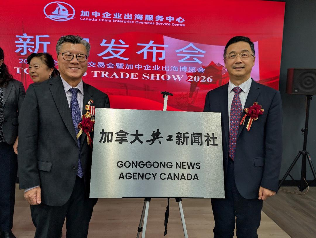 出海中心为加拿大共工新闻社举行成立揭牌仪式。加拿大共工社 发