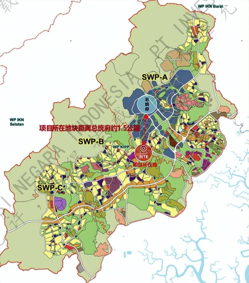 图说:如图红色标志是项目位置、蓝色圆圈的是新总统府。印尼共工社 发