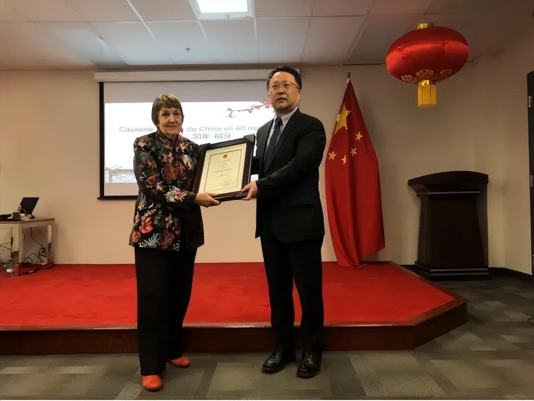 戴总领事娓娓道来李莎的过往:她在中国工作生活30多年,踏遍神州,笔耕不辍,撰写了数十部著作、上千篇文章,翻译成多国文字,将一个真实的中国呈现给世界;她投身公益,献血三十余次,资助六名藏族女孩完成大学学业……她也收获了无数荣誉,包括2001年中国政府“友谊奖”,2005年成为首批拥有北京市居民身份证的外国人,2015年“中华图书特殊贡献奖”,2023年中国驻加拿大使馆2022年度“大使奖”……