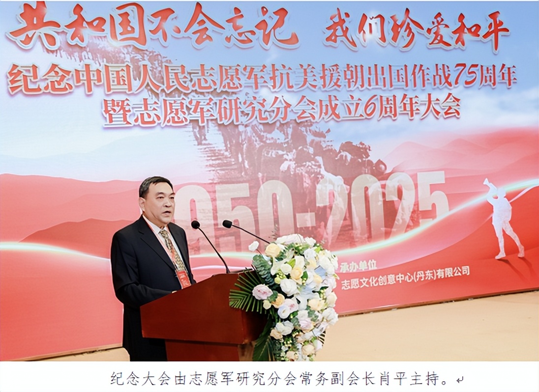 (记者 常魁星 通讯员 李天印 黄象红 郭海鹏)铭记烽火岁月, 传承英雄精神。今年是中国人民志愿军入朝作战75周年,10月25日下午,中国战略与管理研究会志愿军研究分会在北京举行了中国人民志愿军抗美援朝出国作战75周年暨志愿军研究分会成立6周年纪念活动,以“共和国不会忘记·我们珍爱和平”为主题,重温抗美援朝战争的艰辛历程和伟大胜利,缅怀浴血奋战牺牲在异国他乡的志愿军将士,弘扬伟大的志愿军精神,以激励大家为实现中华民族伟大复兴的中国梦而努力奋斗。志愿军研究分会常务副会长肖平主持纪念活动。