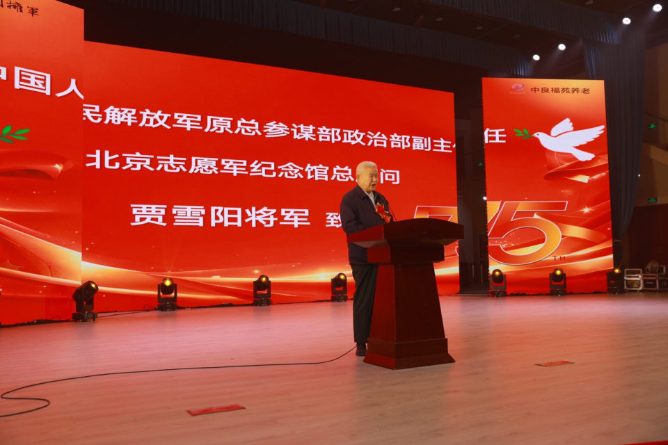 原解放军总参政治部副主任,北京志愿军纪念馆(筹)顾问贾雪阳将军讲话。他说,1950 年 10 月 25 日,中国人民志愿军肩负着人民的重托与民族的希望,毅然跨过鸭绿江,奏响了 “保家卫国” 的英雄战歌。这场战争自 1950 年 10 月志愿军入朝后首次作战起,至 1953 年 7 月 27 日《朝鲜停战协定》签署宣告结束,历时两年九个月。志愿军凭借钢铁般的意志,以相对落后的装备,战胜了装备精良的以美国为首的 16 国联军及南朝鲜军队,创造了震撼世界的战争奇迹。抗美援朝战争是新中国的 “立国之战”,正如毛主席所言 “打得一拳开,免得百拳来”,其伟大胜利打破了美帝国主义反动派 “不可战胜” 的神话,奠定了新中国在亚洲乃至国际事务中的重要地位,深刻改变了世界战略格局。同时,这场战争有力保障了国家主权与安全,为国内建设赢得了长期和平环境,更推动了人民军队现代化建设,极大激发了全民族的精神力量,让中国人民真正挺直腰杆站立于世界东方。