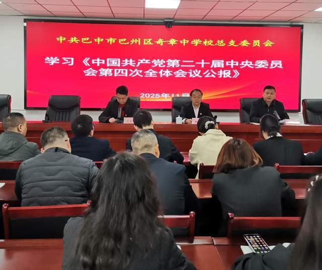 (记者 常魁星 张仕文 通讯员 郭长明)11月4日上午,四川省巴中市巴州区奇章中学党总支委员会开展了深入学习贯彻党的二十届四中全会精神主题党日活动。学校领导班子、中层干部、全体党员、入党积极分子参加了活动。党总支副书记吴金成主持活动。