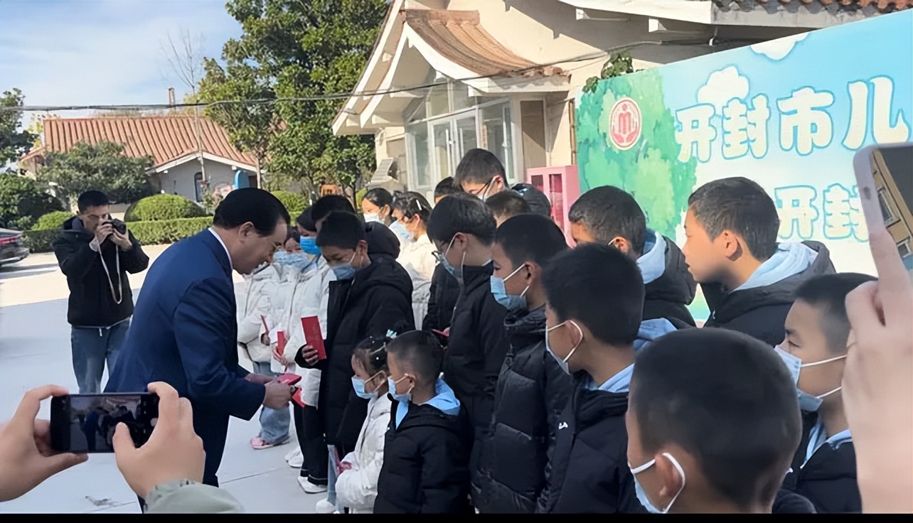 王玉印细致察看福利院生活环境、居住条件与教学设施,耐心询问孩子们饮食起居及学习情况。望着一张张稚嫩纯真的笑脸,他逐一为64位孩子送上红包,轻声勉励:“要好好学习,天天向上。”此次是泰益德集团在开封第三次开展的慈善行动,更是王玉印数十年深耕慈善、温情坚守的生动缩影。