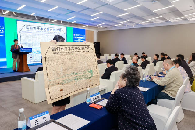 随即主持人、中国收藏家协会国际艺术品交流专委会王竹会长在引题谈话时以类举方式向来宾分享了文博藏品中所蕴含的中华文化外在表达与内在价值。他向来宾展示了一幅百年前由黎锦熙先生规划设计的“国语四千年变化潮流图”,试图以江河形态、用中外多语种标注出汉字几千年演变趋势,这是最早尝试用直观、新颖的舆图手法向国外公众诠释汉字文化“书同文”的统一性之由来,从而激发了近代海外公众对华语文字的关注度和好奇心。
