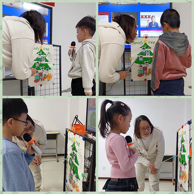 本次课程最大的亮点在于尾声的 “我是小小演讲家”指图演讲环节。每个孩子轮流上台,面对主题图画进行演讲。年龄稍长或有基础的孩子已能落落大方、语句流畅地讲述;而年纪较小或刚入门的孩子,则在赛赛老师温柔的提示与句型引导下,也能指着图画,勇敢地说出完整的句子。这一刻,无论水平高低,每个孩子都体验到了“我能完成”的成就感与站在聚光灯下的自信。现场掌声不断,为每一个突破自我的瞬间喝彩。