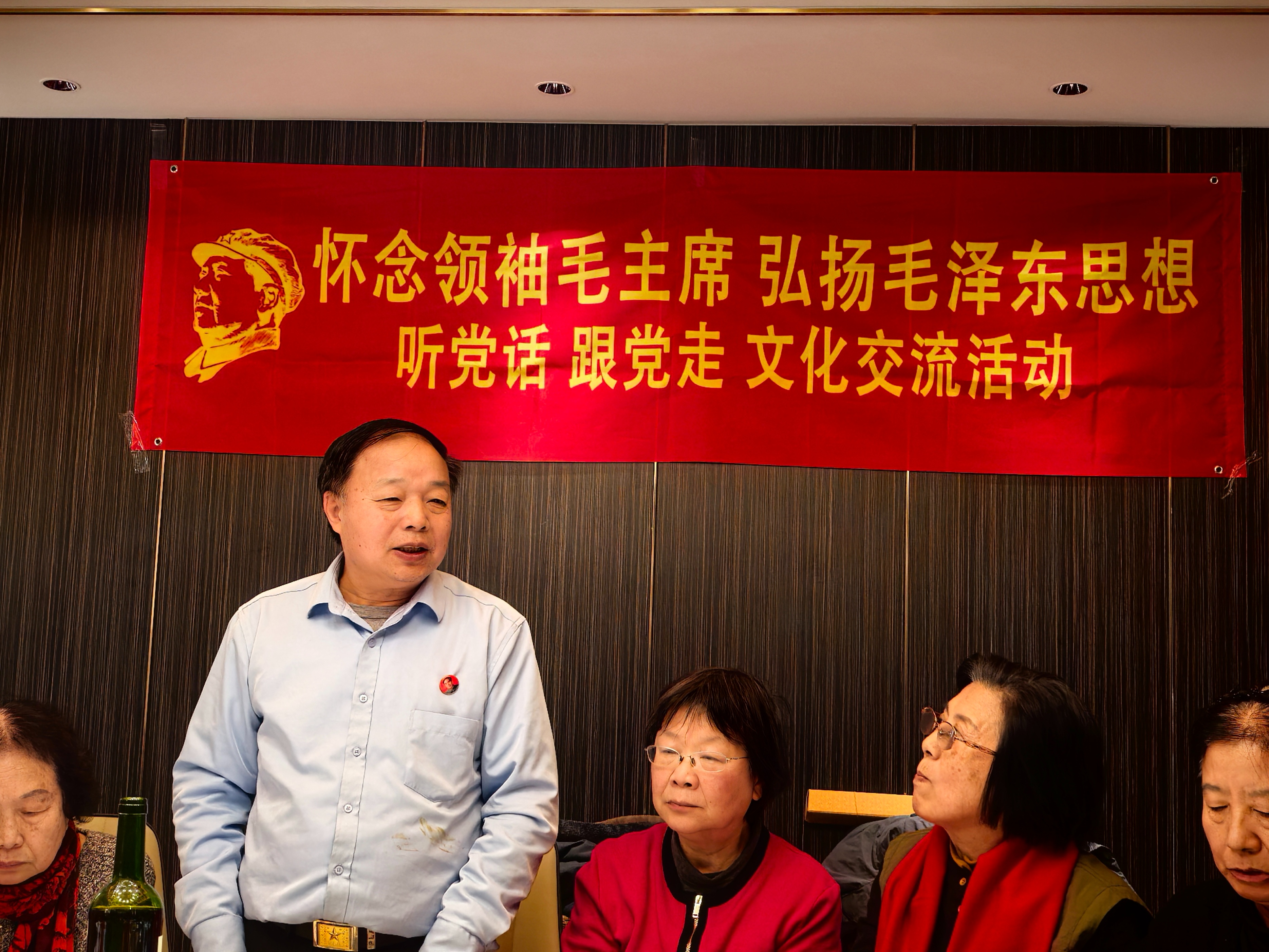 毛泽东思想弘扬者、志愿军司令部参谋黄兆奎之女黄象红激动地说,我父亲在志愿军司令部的老战士,已是耄耋之年,他们听说这次活动后,一定要参加,并说:弘扬毛泽东思想、宣传红色文化我们也应该尽一份责任。今天12月30日,在这辞旧迎新的温馨时刻,我们欢聚一堂,心中有说不尽的亲切与幸福。在毛主席诞辰132周年之际,我们怀念领袖毛主席,对领袖为国家独立、人民幸福鞠躬尽瘁的伟绩,我们铭记心中,他的思想和精神永远是我们前行的力量!忆往昔,我们追随领袖足迹,为国家建设挥洒汗水,奉献青春,峥嵘岁月。看今朝,我们虽已退休,但初心未改,依然牵挂家国、传递爱国情怀。站在这新一年的门槛,我们满怀信心与期待。在新的一年里,我们继续传承红色基因,互相关爱扶持,永远牢记吃水不忘打井人,歌颂老一辈无产阶级革命家的丰功伟绩,为建设中国式现代化,实现中华民族伟大复兴,踔厉前行。