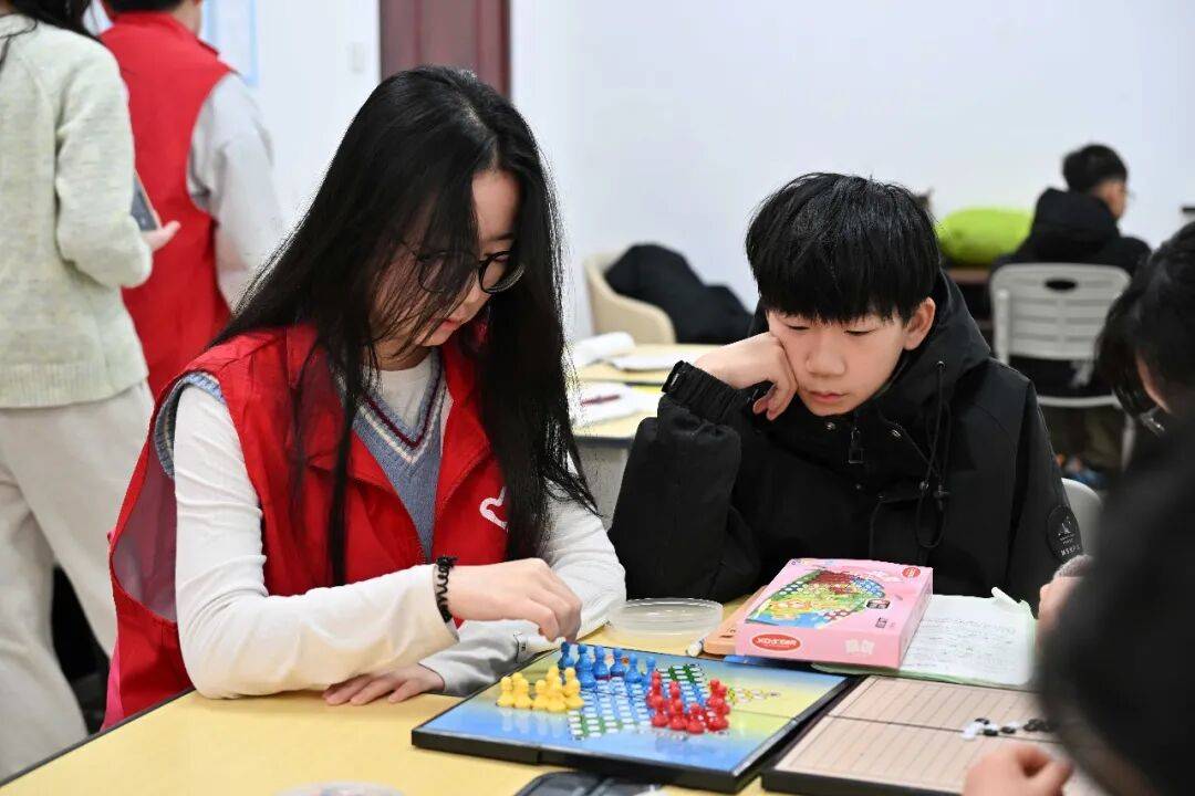 在托管班内,志愿者们在轻松愉快的氛围中开展了下棋、桌上足球等课外娱乐活动。形式简朴却内涵丰富的游戏,不仅有效锻炼了孩子们的动手能力与思维能力,也在互动协作中增进了彼此之间的交流与友谊。欢声笑语驱散了冬日的寒意,为略显单调的假期注入了温暖与活力,使孩子们在参与中感受到陪伴的力量与集体的温情。