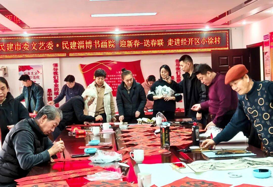 2月10日,民建淄博市委会文化艺术委员会、民建淄博书画院和民建张店区委会的书画家们,应邀走进经开区傅家镇小徐村,开展“翰墨迎新春,马年送万福”系列活动。民建淄博市委会文化艺术委员会主任、民建张店区委会副主委姜长胜,民建市委会文化艺术委员会副主任、民建张店区委会副主委左向东,文化艺术委员会副主任田淑国、冯尚杰,经开区傅家镇相关负责同志出席活动。