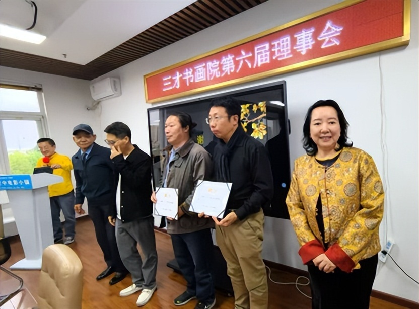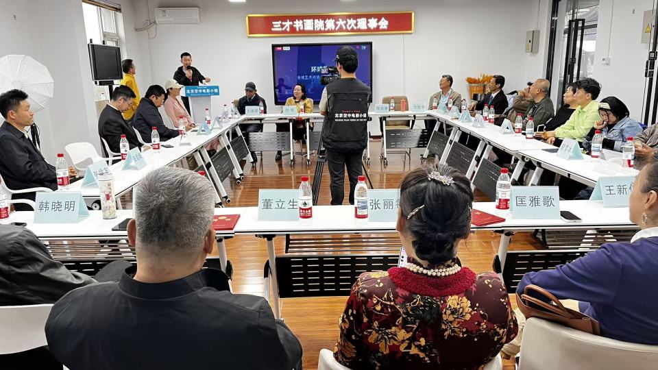 三才书画院领导班子出席会议的有:三才书画院院长、北京空中电影小镇联合创始人、鸿鹄巢创投产业基地执行总裁崔巍,北京中能汇通投资管理有限公司董事长、三才书画院常务院长刘悦,华夏文化促进会理事、三才书画院名誉院长、金砖国家文化艺术国际合作委员会新闻部长常魁星,艺人学院研究院院长、三才书画院副院长程鸿雁,中国文联通俗文艺研究会高级研究员、北京翰林书画院副院长、世界非遗研究院副院长、三才书画院书法专委会主任杨新民。