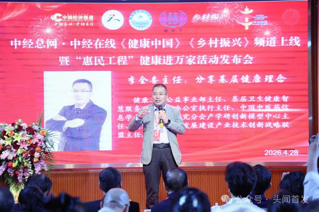 (记者 常魁星 )春风送暖开盛会,健康惠民进万家。 4 月 28 日,中经总网・中经在线《健康中国》《乡村振兴》频道上线暨 “基层健康惠民工程・健康进万家”主题活动,在河北省燕郊行宫酒店隆重举办。全媒体传播矩阵以 “创新创业激活基层市场活力” 为核心主题,汇聚行业领导、专家学者、企业代表及媒体嘉宾二百余人齐聚一堂,共商健康中国与乡村振兴融合发展新思路,全力推动基层健康服务落地增效!