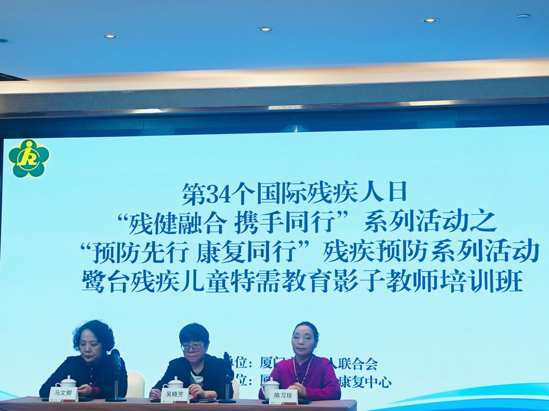 台湾共工新闻社厦门讯(记者 熊馨缘)在第34个国际残疾人日来临之际,为深化残健融合理念,推动鹭台两地特殊教育交流合作,由厦门市残疾人联合会主办的“残健融合 携手同行”系列活动之“预防先行 康复同行”残疾预防专题活动暨鹭台残疾儿童特殊教育影子教师培训班,于12月6日在厦门京闽中心酒店顺利收官。来自厦门市各康复机构的百余位教师、负责人及特殊儿童家长齐聚一堂,在两岸专家的系统授课与实操演练中,共同探索支持特殊儿童融合教育的科学路径。