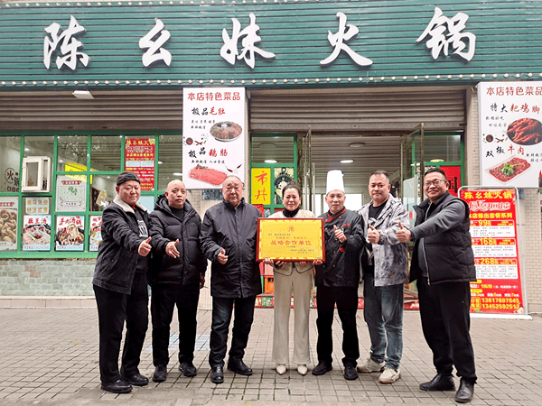 授牌仪式上,走访团为陈幺妹火锅店正式授予“寻根聚脉、智联陈企”战略合作单位牌匾,标志着门店正式纳入陈氏宗亲企业战略合作体系,开启互助共赢新征程。