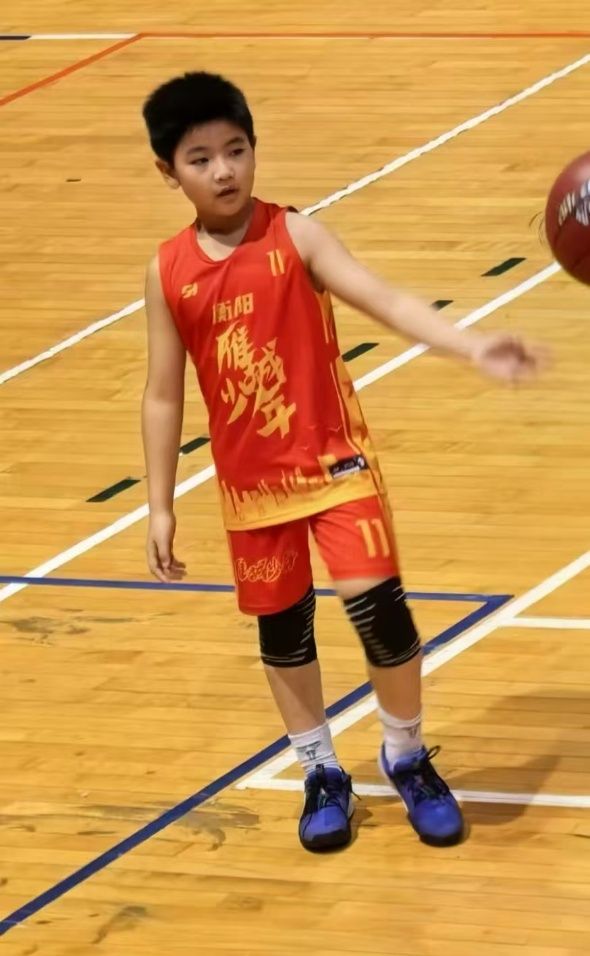 10岁的许浩宇,是家里的“小篮球迷”。从6岁参加U6组别比赛起,便彻底爱上这项运动,NYBO青少年篮球公开赛、衡阳市青少年篮球赛上,总能看到他小小的身影。他还收获了属于自己的荣誉,那些奖状被小心翼翼摆在书桌最显眼的位置,时刻激励着自己。刚开始打球时,他运球不稳、投篮不准,输球后常会委屈落泪,却从未放弃,哭完便拉着爸爸和哥哥请教。许小军耐心纠正他的运球姿势,许浩恩则示范投篮发力,在家人的帮助下,浩宇的球技日渐娴熟,还能在赛场上与队友默契配合得分。