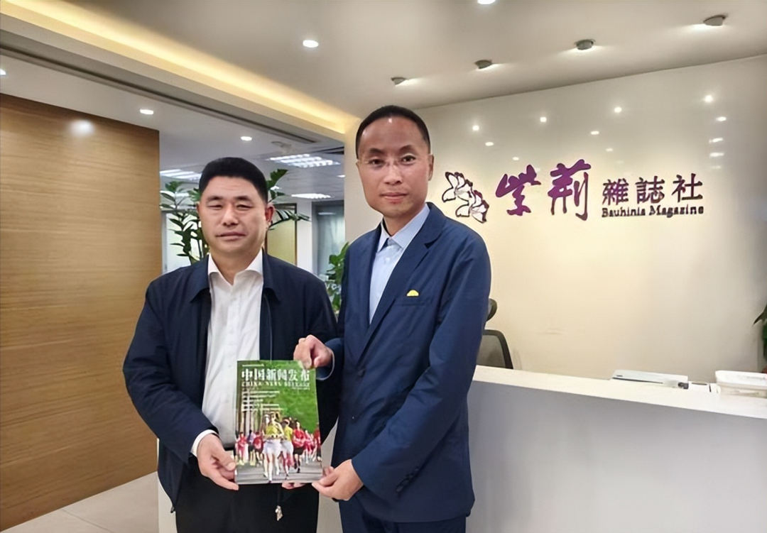 2025年10月24日下午,香港共工新闻社高级新闻顾问、《中国新闻发布》杂志特邀策划、中国红刊传媒创始人黄光宇一行到访紫荆杂志社交流,并向紫荆杂志社社长杨勇赠送《中国新闻发布》杂志,初步计划双方将来在采编内容上做一些交流合作。