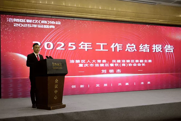 涪陵区人大常委、民建涪陵区委副主委、区餐饮(商)协会会长刘明杰作2025年度工作总结,从党建引领强根基、组织建设提质效、行业规范筑防线、政企沟通搭桥梁、交流合作拓空间、品牌标准双提升、社会责任勇担当六大方面,系统梳理协会年度工作成效。他以“为梦想,不止步”展望2026年,寄语全体餐饮人坚守初心、实干笃行,让每份坚守皆有收获,每份付出皆获荣光。