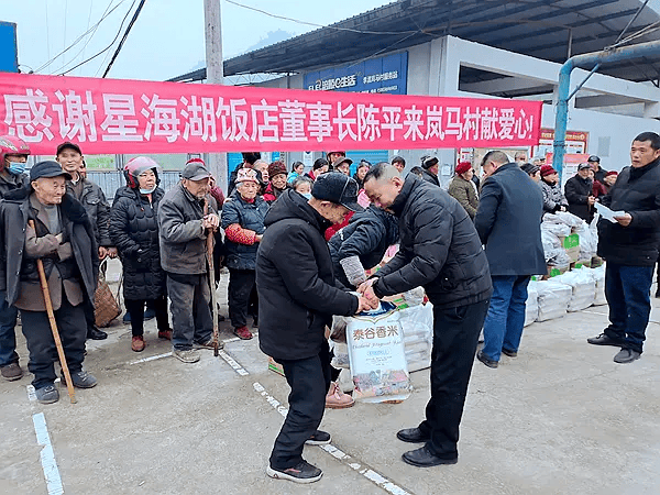 据了解,陈平董事长在深耕餐饮实业的同时,始终热心公益、情系乡梓。2022年、2023年连续春节期间,先后前往涪陵区李渡街道岚马村开展“献爱心、送温暖”活动,为当地百余户家庭送上大米、食用油、腊肉、香肠等生活物资,并为特殊困难家庭送上慰问金,以实际行动践行社会责任,充分展现了陈氏宗亲的责任与担当。