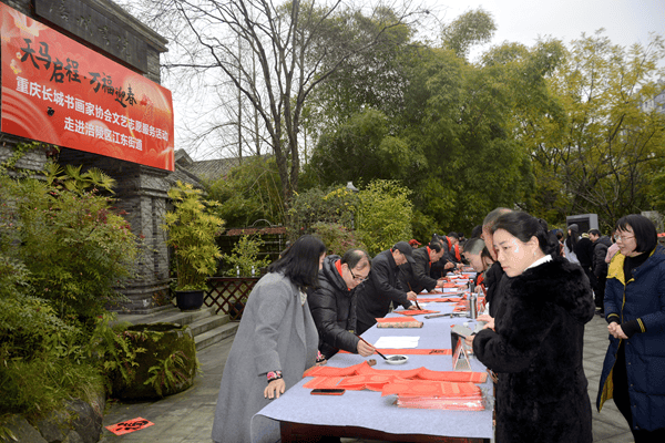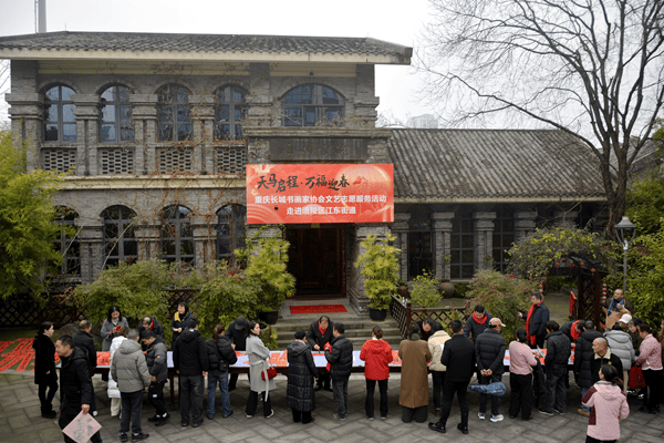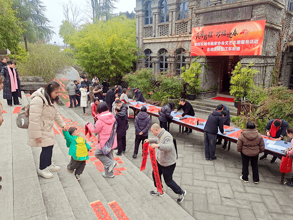 近日,“天马启程 万福迎春”重庆长城书画家协会文艺志愿服务活动走进涪陵区江东街道涪州书院。活动以书院为核心文化阵地,书画名家现场挥毫泼墨,为周边居民免费书写春联与“福”字,让传统年俗与书院文脉交相辉映,营造出浓郁喜庆的涪陵新春文化氛围。