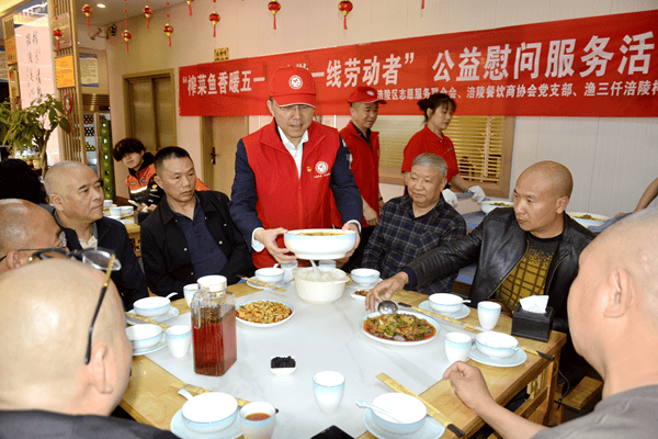 五一劳动节将至,为礼赞坚守岗位、默默耕耘的一线劳动者,传递城市温情,彰显企业与行业社会责任。4月29日,由重庆市涪陵区志愿服务联合会、涪陵区餐饮行业协会党支部、渔三仟涪陵榨菜鱼联合发起的“榨菜鱼香暖五一·致敬一线劳动者”公益慰问活动,在滨江路渔三仟涪陵榨菜鱼温情启幕。活动延续“一碗豆花饭·温暖一座城”公益初心,以特色美食传递暖心关怀,向各行各业一线劳动者致以诚挚的节日问候与崇高敬意,尽显涪陵餐饮行业的责任担当与温情大爱。