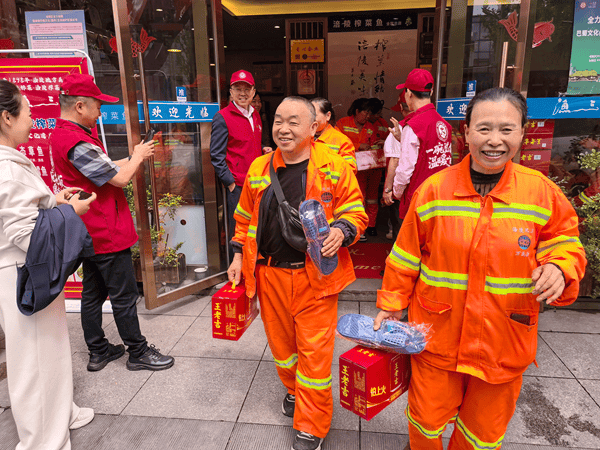 聚餐结束后,活动现场还为每位一线劳动者精心准备了凉拖鞋、清凉饮品等实用物资,把贴心关怀落到细微之处。此次公益慰问活动,不仅以美食与物资为一线劳动者送上节日祝福,更凝聚了社会各界的关爱力量,大力弘扬劳动精神与奉献精神,持续传递文明向善的社会正能量。(陈孝波 文/图)