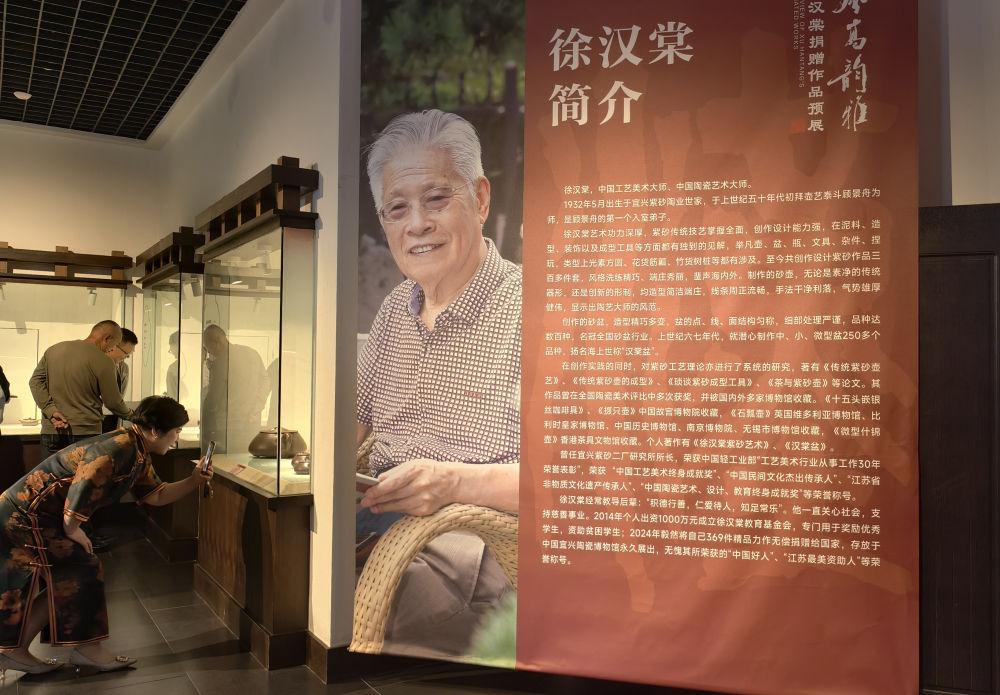 5月11日,“风高韵雅——徐汉棠捐赠作品展”在宜兴陶瓷博物馆开幕,吸引了近300位陶艺、文艺、教育等各界人士共襄盛举。这场浓缩了中国工艺美术大师徐汉棠70余年创作精品的展览,不仅为中青年紫砂艺人搭建起宝贵的交流学习平台,也为“中国陶都”再添文化注脚。