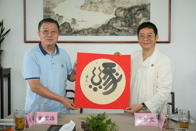 笔会环节,唐健文先生挥毫泼墨,一个苍劲有力的“缘”字跃然纸上,赠予书院永久收藏。他带来的【中国古文字·百家姓】书法作品,更将座谈会引入了深邃的历史时空。座谈会上,衡阳市专家刘忠平、彭丽、郭幸君分别系统阐述了湖湘文化、红色文化及衡阳三千年文明史,夯实了讨论的学术根基。