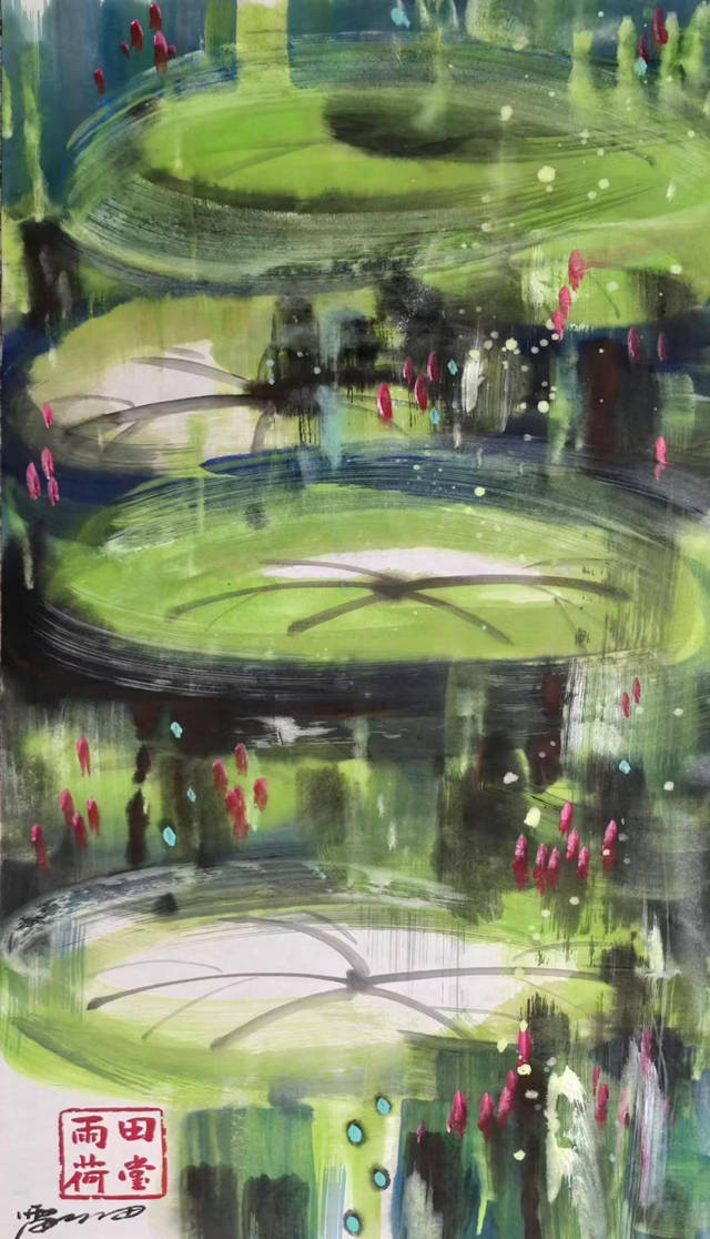 “萧韶九成,凤皇来仪”。西汉辞赋家司马相如的“凤兮凤兮归故乡,遨游四海求其凰”也成为求爱的千古名句。凤凰古城人杰地灵,凝天地日月之精华,得山水人文之灵气,汇百年沧桑,仍风韵犹存。雷雨田尤其喜欢象征和和美美的荷花。为此,他在夏日里常去赏荷、悟荷、画荷。他用色大胆,大写意之荷叶妍丽温雅,深得国际友人喜爱。他在艺术的升华中提炼出来的“简、韵、活、妙”等独特技法,大写意画技法独特,构思立意广远,用笔简约凝练,线条豪放洒脱, 笔墨收放之间,尽显大家风范。个人作品广泛被国内外收藏家、友人及博物馆收藏。