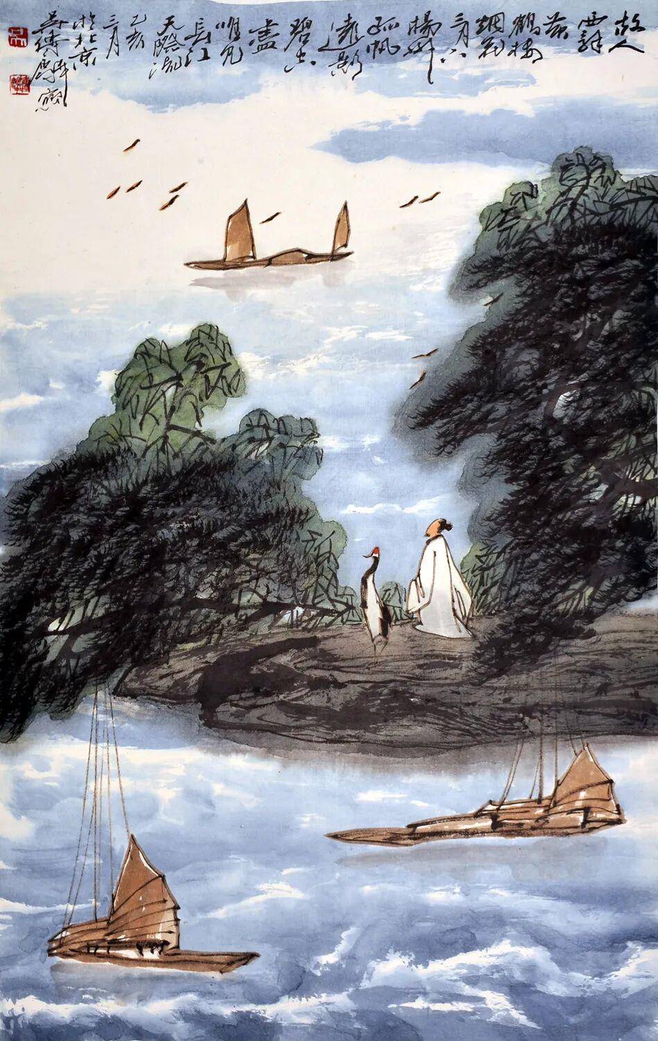 李白诗意图 80×51.5cm 纸本设色 1995年