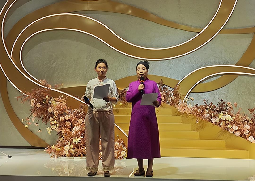 晚会高潮在尾声部分温情绽放。陈习珍、刘梦缘、吴慧娟三位来自台湾的爱心代表携手登台,带来配乐朗诵《乡愁》。舞台上,柔和的追光映照三人坚定而温情的面庞,背景中钢琴与小提琴的旋律交织流淌,时而轻柔如耳语,时而深沉如倾诉。陈习珍老师的朗诵温润厚重,融汇两岸牵挂与对团圆的期盼,更饱含二十余年特教耕耘的初心;吴慧娟女士的嗓音温柔坚韧,带着母亲守护星娃的深情,将对孩子的爱与对两岸同胞的情谊融入字句;刘梦缘则以清澈童声穿插其间,如一缕微光穿透岁月阻隔,为这份“乡愁”添上一抹纯粹与希冀。“小时候,乡愁是一枚小小的邮票……而现在,乡愁是一湾浅浅的海峡,我在这头,大陆在那头。”当最后一句落下,旋律升华,三人紧紧牵手,眼中泪光闪烁,台下观众无不动容,掌声与哽咽交织。这场凝聚母爱、公益心与两岸情的朗诵,不仅是对经典的致敬,更是台湾特教工作者、星娃家长与爱心少年“心往一处想、劲往一处使”的生动写照,将海峡两岸血浓于水的亲情与守护特殊儿童的共同心愿诠释得淋漓尽致。