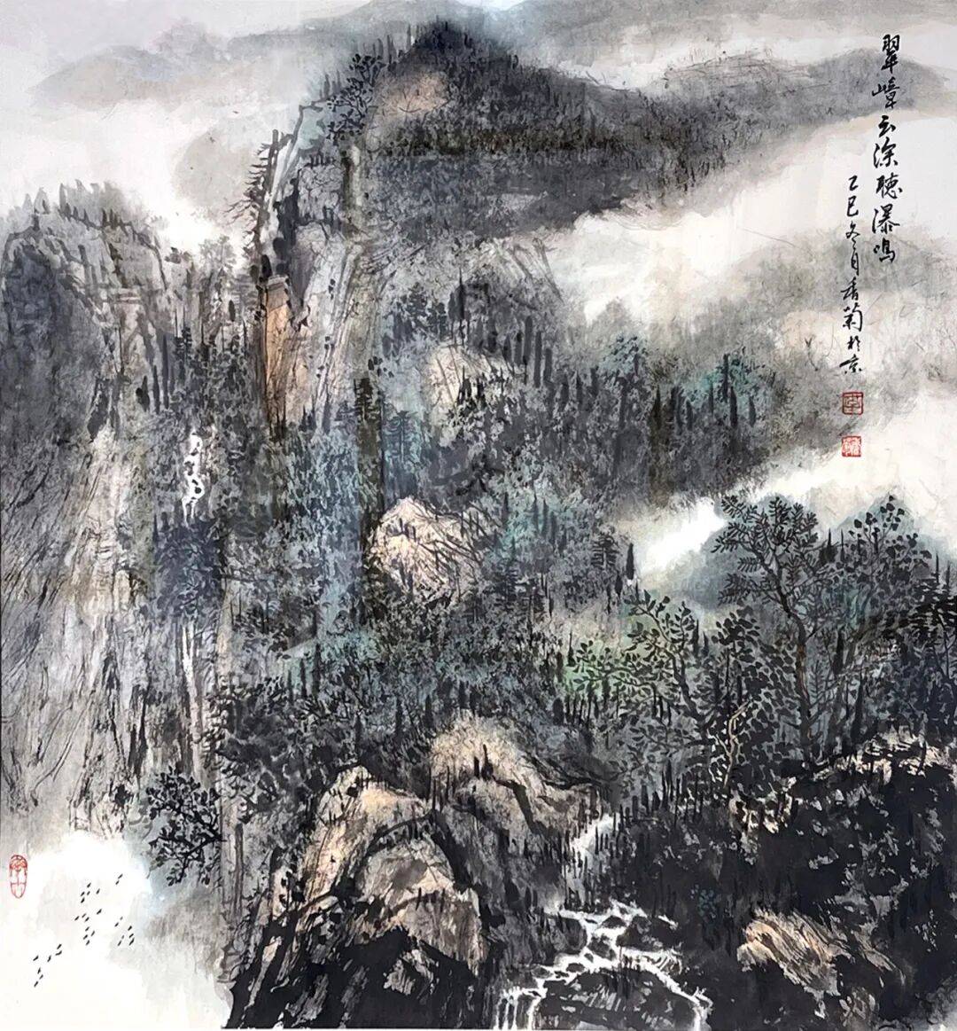 翠嶂云深听瀑鸣 纸本设色 66×66cm 2025年