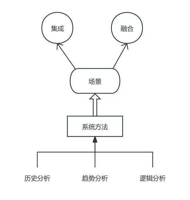 如图2所示,新形态空间的方法论构建应当将历史分析、趋势分析、逻辑分析统一到系统方法论上,这个系统方法论表现为以场景为基础进行集成与融合。