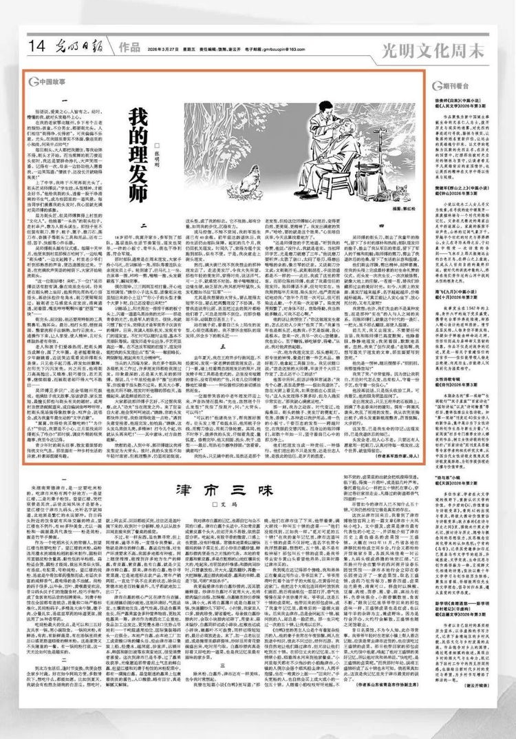 一文名震天下。这篇几乎引发全民热议的文章,已成为“现象级文学作品”,被誉为“中国当代散文的经典之作”“新大众文艺”的典范。那么,其究竟好在哪里?其核心价值与艺术魅力何在?为回答这个问题,本人选取汪曾祺《理发师》肖复兴《理发的故事》梁实秋《理发》这三篇同题材经典散文,从写作视角、叙事结构、语言风格、人物塑造、核心主题、情感落点六个维度,一一展开与张明刚《我的理发师》的对比解读,深度剖析其创作特质与时代价值,探寻其产生广泛而深刻影响的深层逻辑。