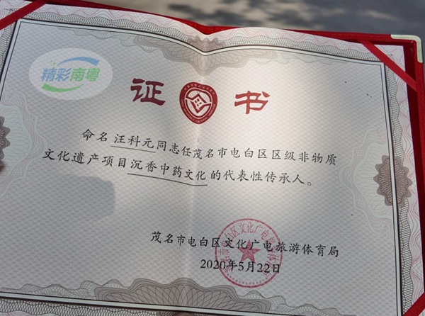这一荣誉不仅是对汪科元深耕沉香行业48年的高度肯定,更标志着电白区在沉香非遗保护与传承领域迈上了新台阶。