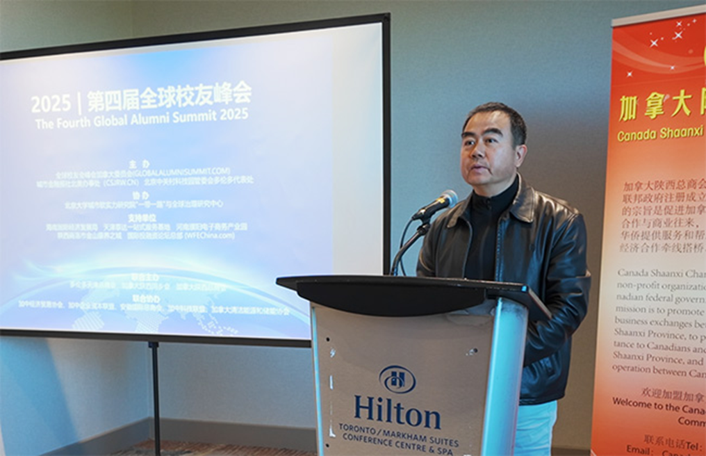 全球校友峰会加拿大委员会主席张志立致辞。共工社发