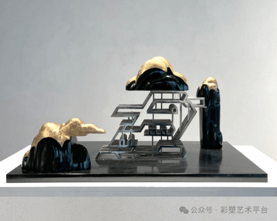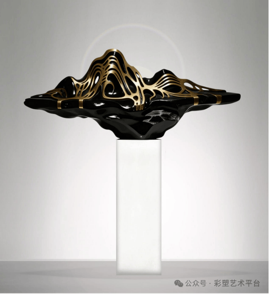 漆艺与雕塑相遇,两种古老艺术形式的碰撞催生出意境表达的新可能。我的这一系列作品以“山”与“径” 为核心元素,将具有装饰意味的意象之山,与抽象极简的线性之“径”熔于一炉,在虚实交织的形体间,雕塑的山形脱胎于自然,经过提炼、概括、重构,以流畅饱满概括山石的形态,剥离了具象的束缚,留下广阔的想象空间,具有多重的意涵,成为传递哲思的载体。而线性造型以简约规整的结构,充分体现出”径”的多重寓意,在形式和内容上都体现出二者的的冲突与对比。二者的结合,让材质的物理属性与艺术的精神属性形成共振,使雕塑不再是单纯的形态呈现,而是意境的具象化表达。而漆艺的介入,为这份意象赋予了天然的光泽与温润触感。