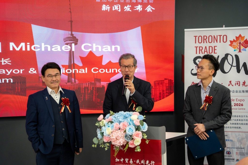 加拿大共工新闻社多伦多讯(记者 孙瑞祥)2026多伦多商品交易会暨加中企业出海博览会(以下简称“多交会”,英文名称:Toronto Trade Show 2026)新闻发布会于2026年1月8日在加中企业出海服务中心成功举行。发布会吸引了近200位来自加拿大三级政府的政要、本地商业团体代表、参展企业负责人及主流媒体人士出席,现场气氛热烈,反响积极。