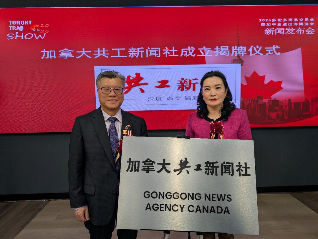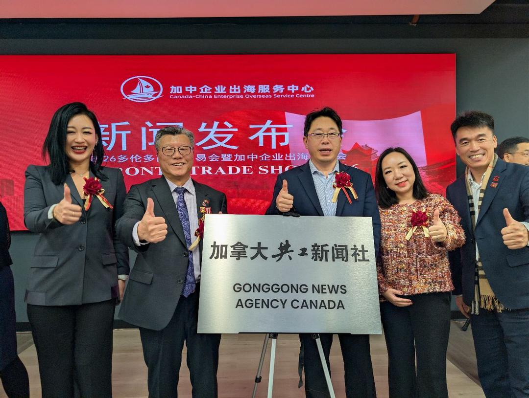 出海中心为加拿大共工新闻社举行成立揭牌仪式。加拿大共工社 发