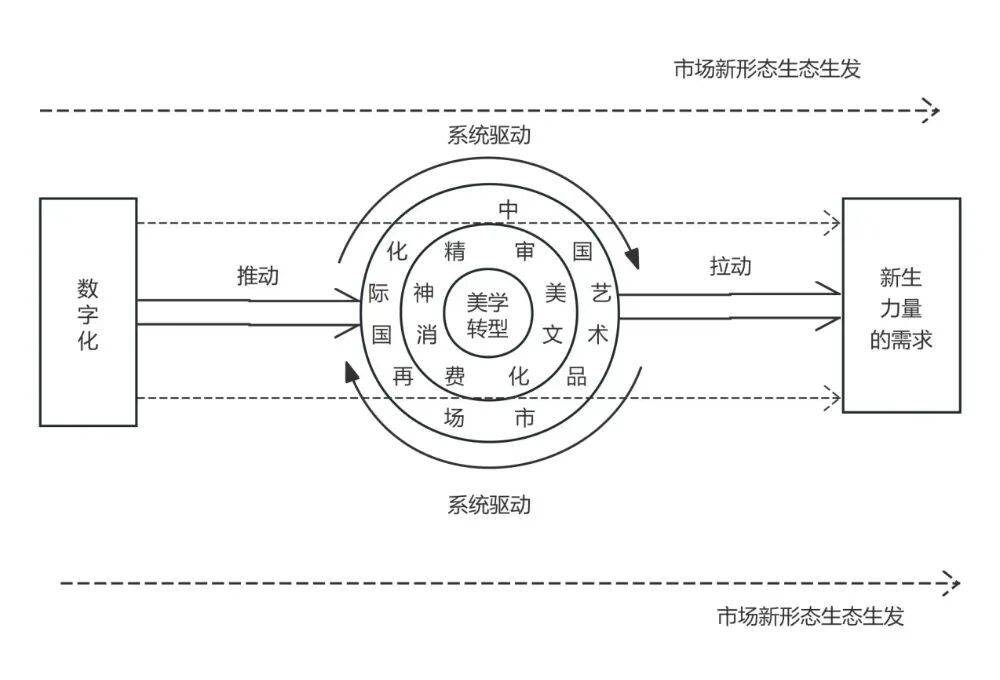 在数字化背景下的再国际化进程中,在数字化推动与新生力量需求拉动这两极作用下,产生系统内在驱动,这一进程远非简单地“走出去”或“引进来”,而是指在市场基础要素、运作逻辑乃至价值评判体系均被数字化深刻改造后,为寻求新的动态平衡而与全球艺术体系进行的系统性接轨与深度融合。一方面,数字化已从一种技术工具演变为重构社会生态的基础性力量,这种技术驱动下的市场新形态,其运行机制与依靠传统画廊、拍卖行和艺博会的自发国际化过程截然不同,它要求一个天生具备全球性、即时性与互动性的市场架构,从而从系统内部生发出强烈的再国际化诉求。另一方面,随着代际更迭,新一代收藏家与艺术消费者逐渐成为市场的重要参与者。他们成长于数字环境,审美取向深受全球流行文化与网络美学的影响,呈现出更加多元化、个性化和体验化的特征。由此带来的“美学转型”,以及伴随而来的“精神消费”崛起,使得他们对艺术品的需求不再局限于传统的投资保值或文化象征,而是更注重其情感共鸣、社交资本与美学体验。这种内在需求拉动市场必须放眼全球,吸纳更广泛的国际艺术资源与话语体系,以满足本土新生力量日益增长的、与国际趋同的审美与文化消费需求。