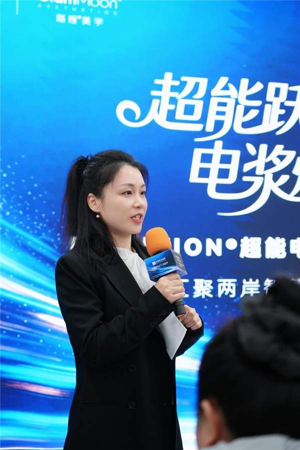 格睦美学总经理 刘璐 在会上介绍——超能电浆通过高频射频能量将氦气加热成等离子态,在皮下形成瞬态热作用,可在0.04秒内升温至 85°C,使脂肪纤维隔即刻收紧,实现皮肤紧致与提拉。