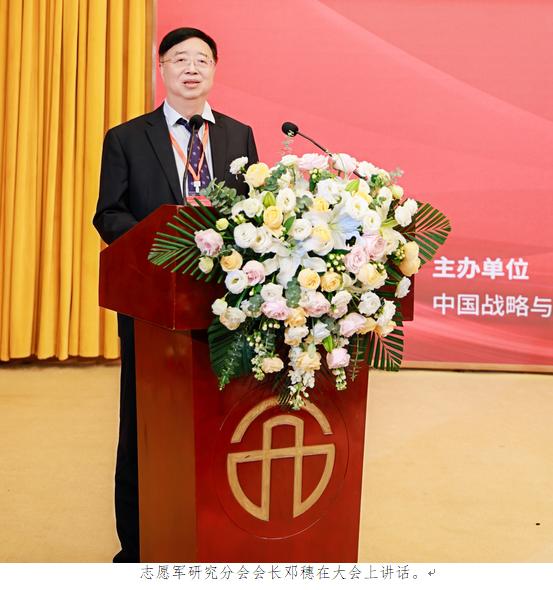 志愿军研究分会会长邓穗在大会上讲话,认真总结回顾了志愿军研究分会成立六年来的工作。他说,志研会始终把研究抗美援朝战争历史,弘扬传承志愿军精神,创新传播志愿军文化,积极开展社会公益活动作为宗旨和目标,做了大量的工作,开展了丰富的社会实践。我们坚持深耕抗美援朝战争历史,多次组织召开《抗美援朝 保家卫国历史与现实》高端学术研讨会;我们坚持激发崇尚英雄、致敬英雄的爱国主义情怀,紧紧围绕缅怀先辈、关爱老兵主题,开展了一系列社会公益活动;我们坚持开展缅怀英烈、清明祭奠活动,使祭奠志愿军烈士活动形成了规模和制度;我们坚持开展“传承志愿军精神”文化传播活动,取得了良好的社会效果。先后创办了四个艺术团,创作排演了一系列歌舞合唱节目;纪念抗美援朝战争胜利70周年书画展览,受到参观者的好评和称赞;我们成立了志愿军丛书编辑委员会,编撰出版了《志愿军老战士风采录》《致敬最可爱的人》图书;我们积极筹拍了抗美援朝题材的电影电视剧,参与了电视剧《跨过鸭绿江》、电影《志愿军·雄兵出击》研讨会;在新媒体视频号邓穗穗连续播讲志愿军故事73期,播放量(次)达200万,受到广泛好评。《志愿军精神宣传教育基地》建成并对外展览,全年接待观众70多批,约5000人次;丹东志愿军家书博物馆筹建完成,即将开馆;志愿军精神宣讲团影响广泛,成效显著,宣讲团成员足迹遍布大江南北,分赴机关、部队、院校、企业,赢得广泛赞誉;我们还积极开展社会公益活动,为志愿军老兵、志愿军烈士后代服务,前不久,我们还在四川省德阳市中江县黄继光烈士家乡启动了“崇尚英雄,关爱老兵”慰问活动,给志愿军老战士送温暖、送关怀、送健康;志愿军烈士后代联谊中心还积极地开展为烈士后代寻亲活动,为英雄魂归故里,烈士找到亲人做了大量的工作。我们所做的这些工作,就是为了在新时代光大志愿军英雄形象,传承抗美援朝精神,使抗美援朝精神日益成为中华民族千年赓续的浩然之气。