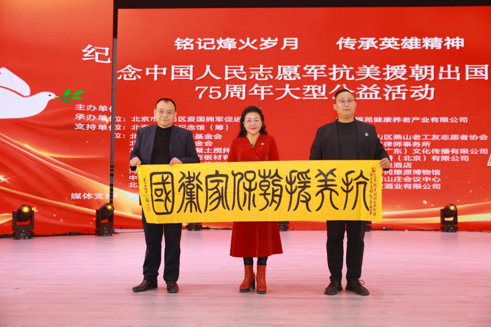 (江山 常魁星 陈胜 黄象红 孙连东 杨洋 陈浩天)“雄赳赳气昂昂,跨过鸭绿江”唱响了中国人民志愿军出国作战的号角,10月25日,纪念中国人民志愿军抗美援朝75周年大型公益活动在北京市房山区韩村河山庄会议中心盛大举行,活动由北京志愿军纪念馆(筹)、北京市房山区爱国拥军促进会、中良福苑健康养老产业有限公司等联合举办,社会各界人士齐聚一堂,共同缅怀志愿军先烈,弘扬伟大的抗美援朝精神。