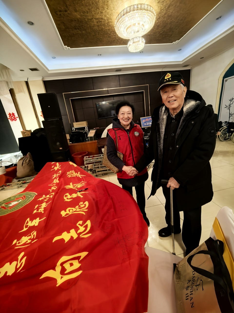 原总参政治部副主任、北京志愿军纪念馆(筹)顾问贾雪阳将军向志愿军老战士赠送了“福寿康宁”书法作品,将军后代陈树新组织军旅书法家书写了“福”和“寿”字等书法作品赠送给志愿军老战士。