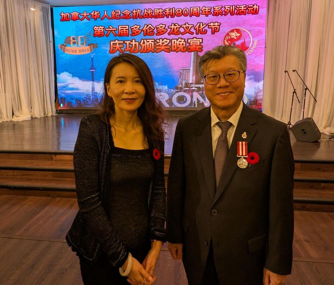 加拿大共工新闻社多伦多讯(记者董勇)当地时间11月5日晚,加拿大华人纪念抗战胜利80周年系列活动暨龙文化节庆功颁奖晚会在多伦多隆重举行。晚会由第六届多伦多龙文化节暨纪念世界反法西斯战争和中国人民抗日战争胜利80周年系列活动组委会主办。来自加拿大社会各界300余位嘉宾齐聚一堂,共同见证这一意义深远的重要时刻。加拿大共工新闻社社长孙瑞祥教授荣获纪念抗战胜利80周年系列活动荣誉勋章。