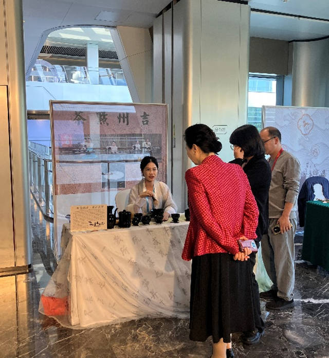 在会间休息的茶歇环节,来宾们移步论坛艺术展区,玄览瓷玉及文房、书画佳构,欣赏了吴双伶女士的吉州宋式点茶和王明先生的点彩技艺,观者啧啧称奇,好评如潮。