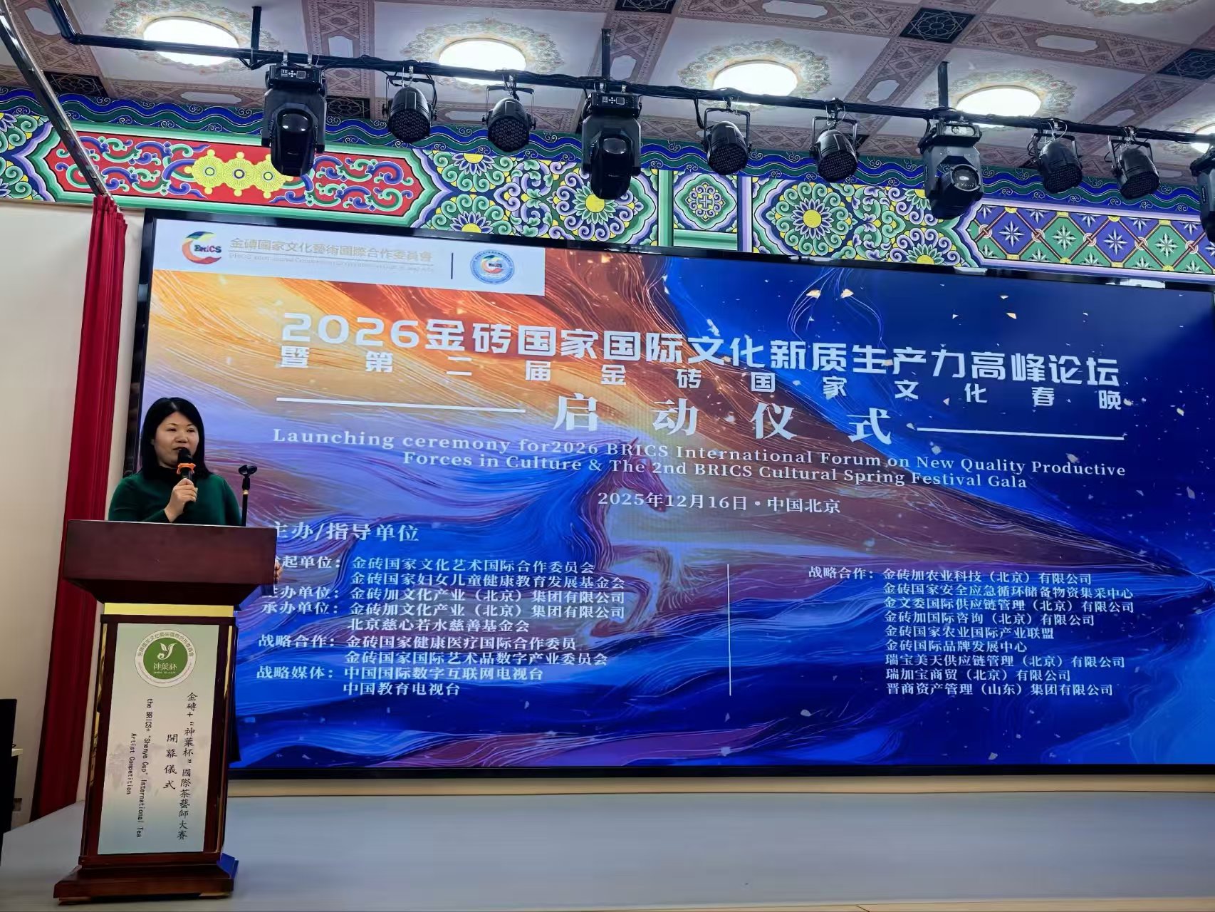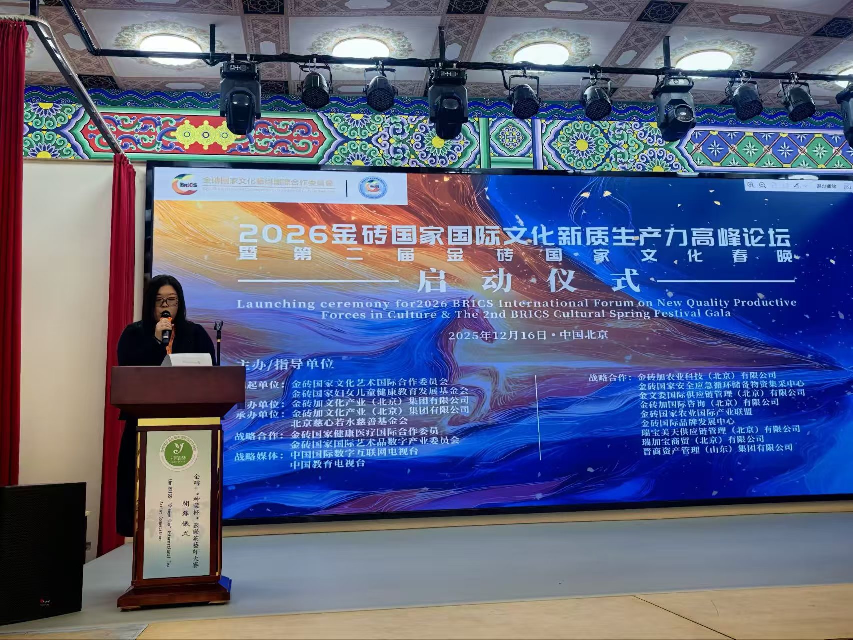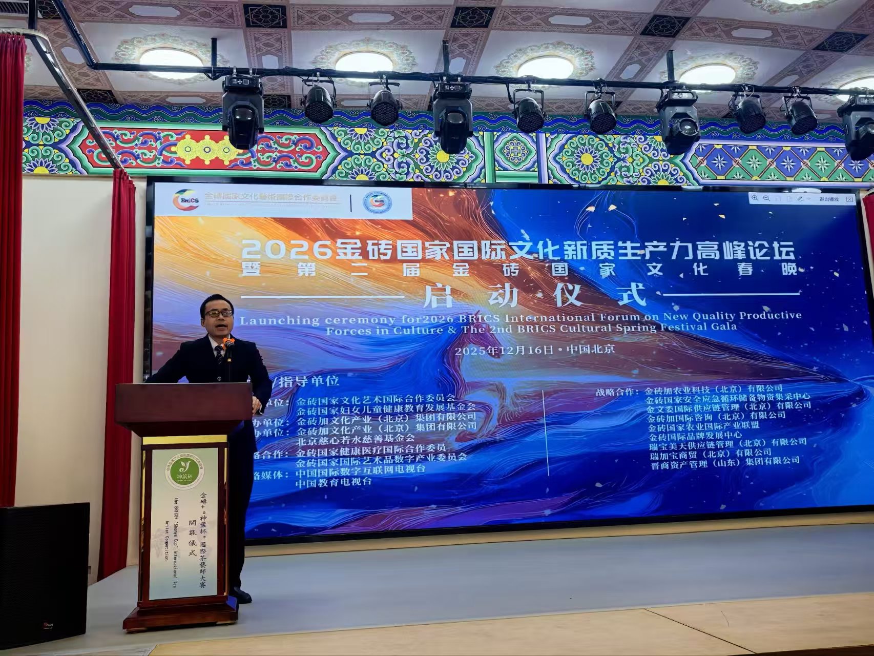 (记者 常魁星 通讯员 陈钰)智汇金砖,创联未来。2025年12月16日,“2026金砖国家国际文化新质生产力高峰论坛暨第二届金砖国家文化全球春晚”启动仪式在北京隆重举行。活动由金砖国家文化艺术国际合作委员会(BCICCA)指导、金砖加文化产业(北京)集团有限公司承办。此次活动是金砖人文交流的年度旗舰项目,承载金砖国家文明互鉴使命。活动核心领导与执行团队首次集体亮相,金文委执行主席金旺才、中国事务局常务副主席宁文茂、2026金砖国家文化春晚导演张冰寒、总策划陈钰、中共中央书记处《一分三》课题组总顾问柳景堂部长、中原智库杨晓金主任等各界嘉宾齐聚,共同见证这一里程碑式的时刻。双轮驱动,思想高地与文化盛宴同频共振;顶层发声:锚定文化新质生产力,共绘合作新图景;战略纵深,金砖文化合作迈入高质量发展新阶段;全球筹备全面提速,2026年初相约北京。